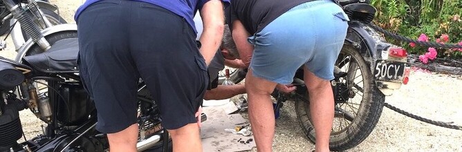 When booking accommodation for the (cancelled) 2022 rally at Clarks Beach the owner Robyn Pearce, mentioned that “As a young woman I travelled many miles pillion on a 1928 Scott Flying Squirrel…”.
